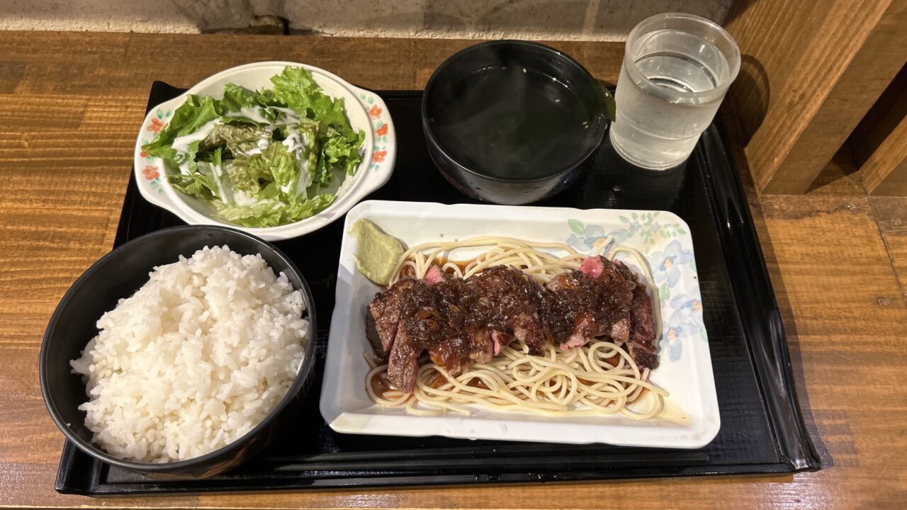 東京都西新宿駅から徒歩2分の山海楽酒 およよ 西新宿店にてビフテキランチ800円。10年以上ぶりの訪問となります。私は大久保駅から歩いてきたので10分以上かかりました。