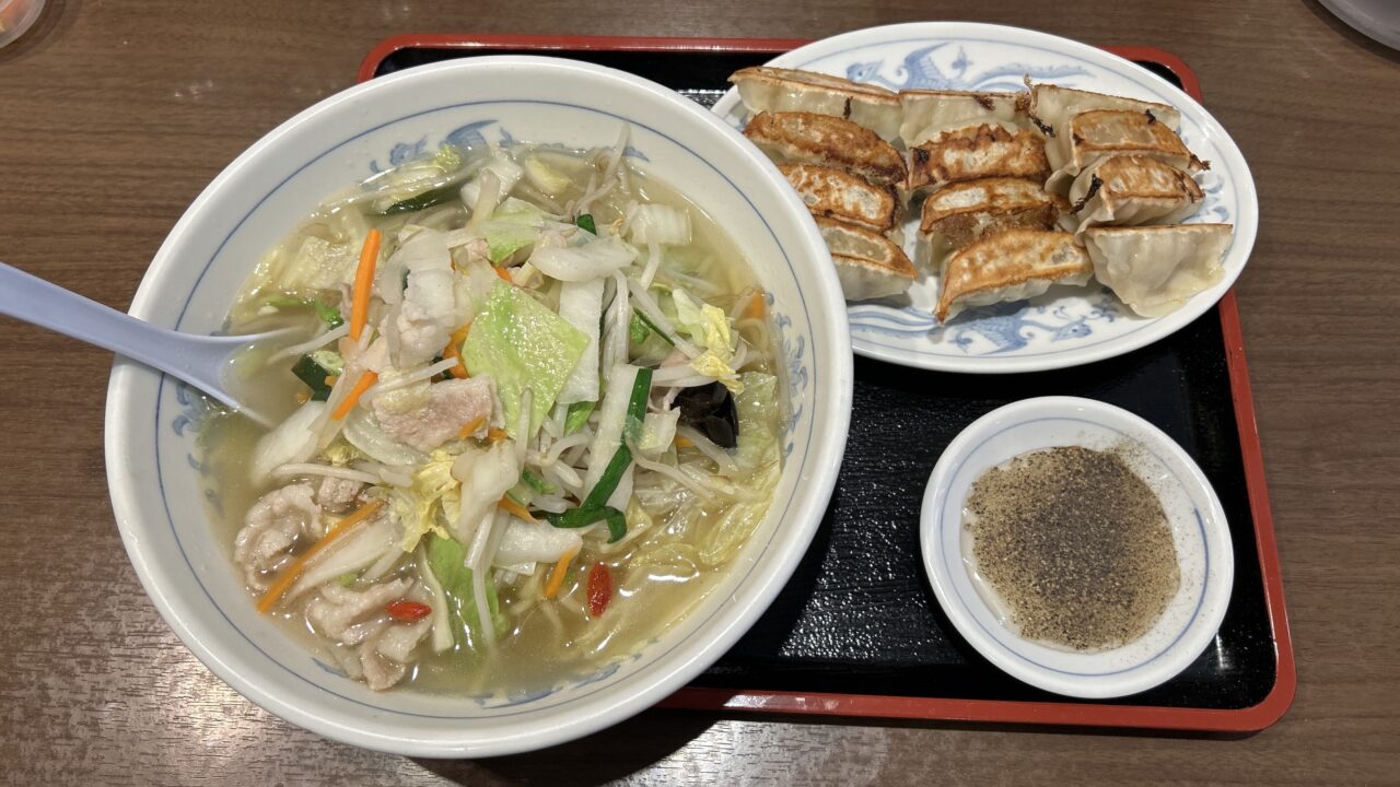 東京都大久保駅北口から徒歩1分の福しん 大久保駅前店にて野菜タンメンに餃子Wで800円。東京中心にチェーン展開している中華料理店でリーズナブルなこともあり学生時代からよく利用していた店です。